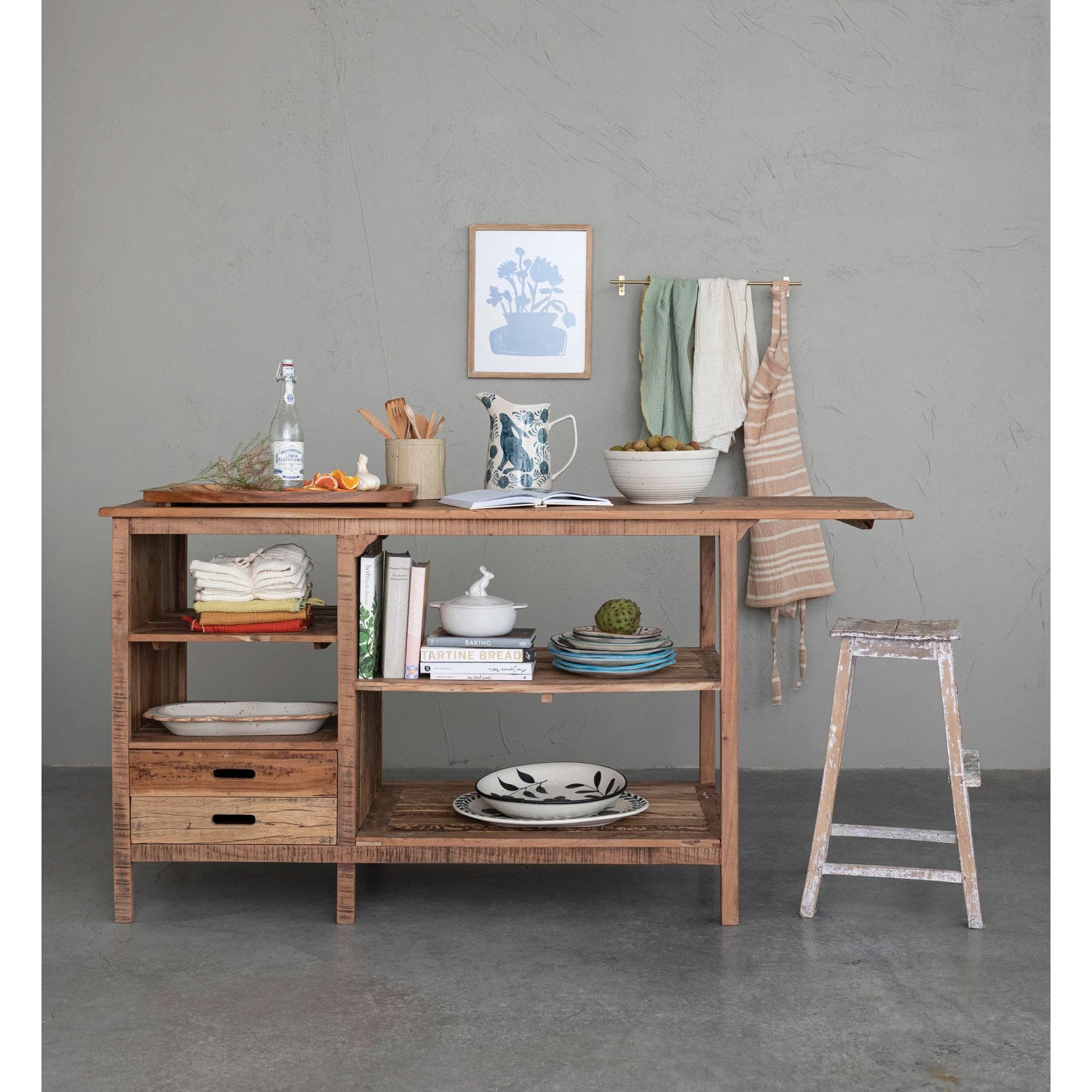 Reclaimed Wood Sideboard/Island w/ 4 Shelves & 2 Drawers
