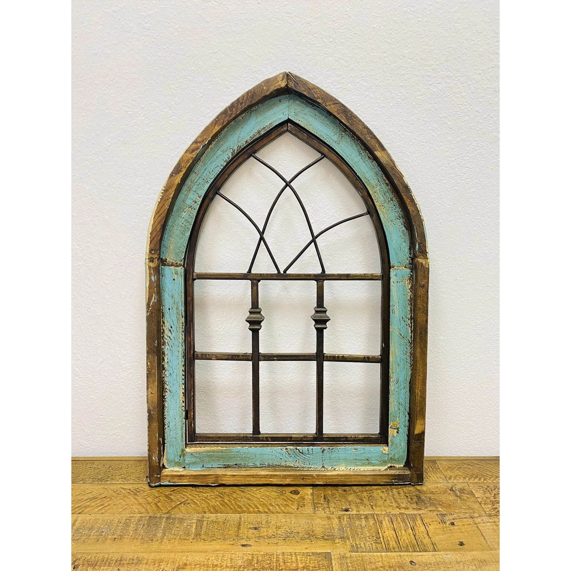 This beautiful Rustic Wooden Arch Window Wall Decor was made by an independent artist. Each one is made individually and will have its own charming characteristics. Perfect for any wall and with the teal color it will stand out in a room.