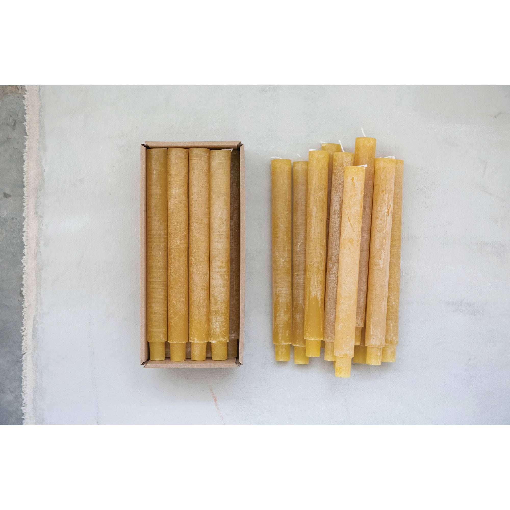 10″H Unscented Taper Candles in Box, Powder Finish, Honey Color, Set of 12 (Approximate Burn Time 15 Hours)