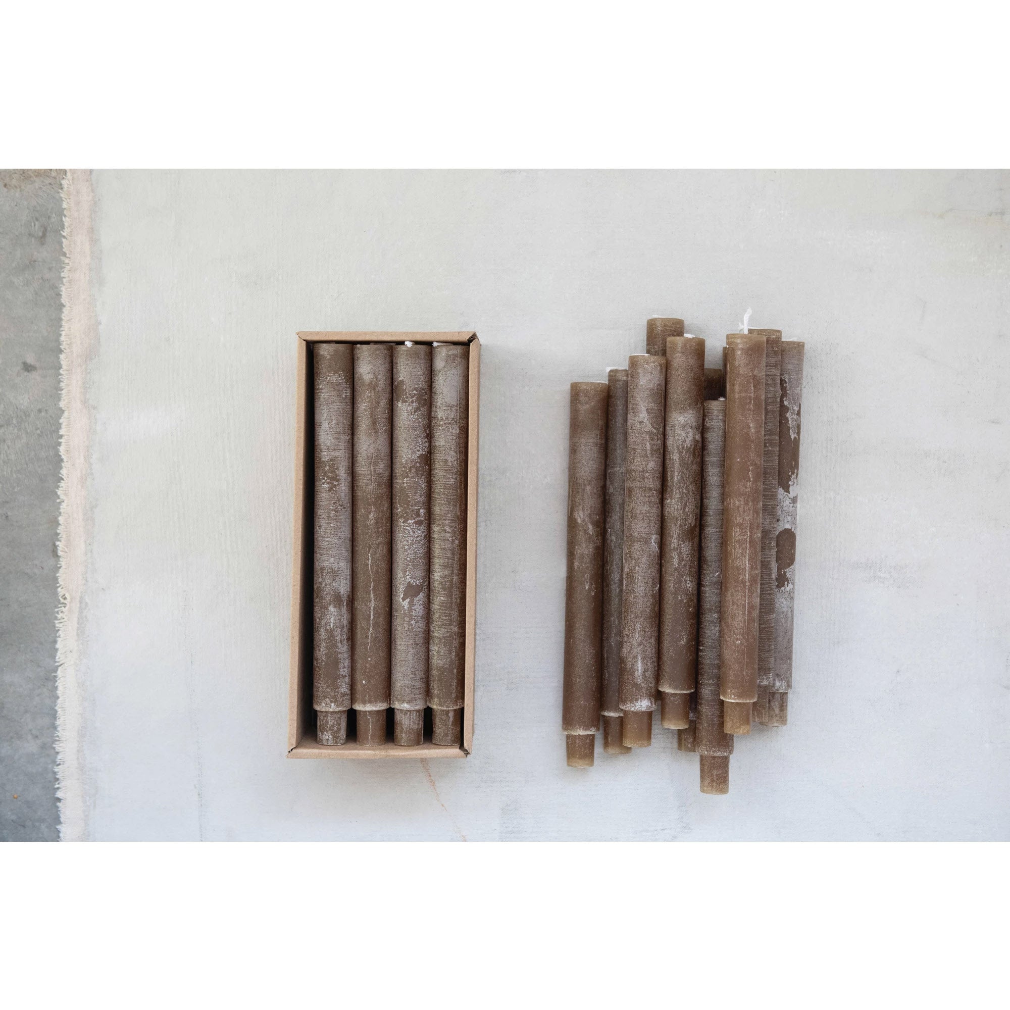 This set of twelve olive-colored taper candles is an ideal choice to complete the desired ambiance for any special occasion. Featuring an unscented design, these candles will burn for hours without overpowering the senses of your guests, making them perfect for entertaining.