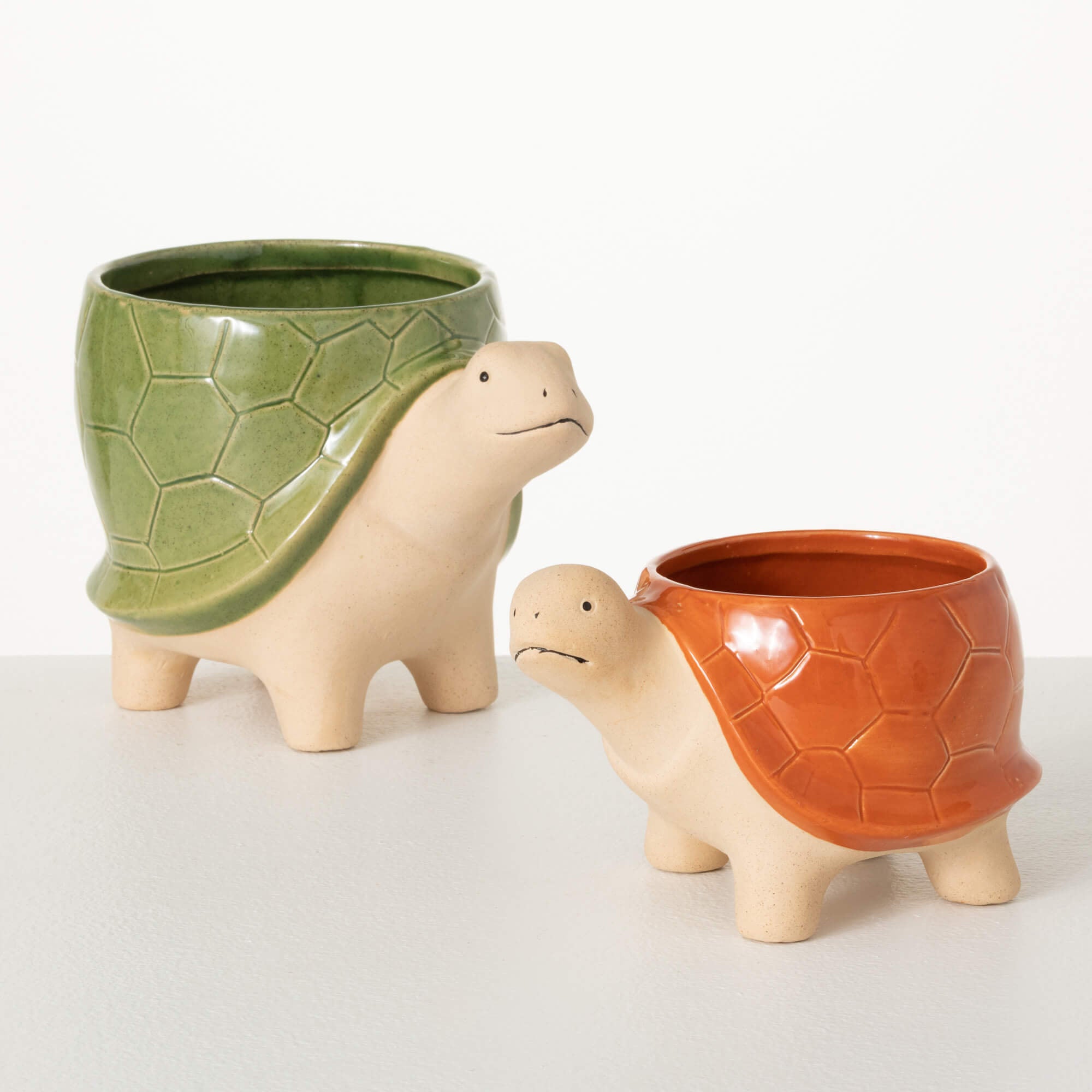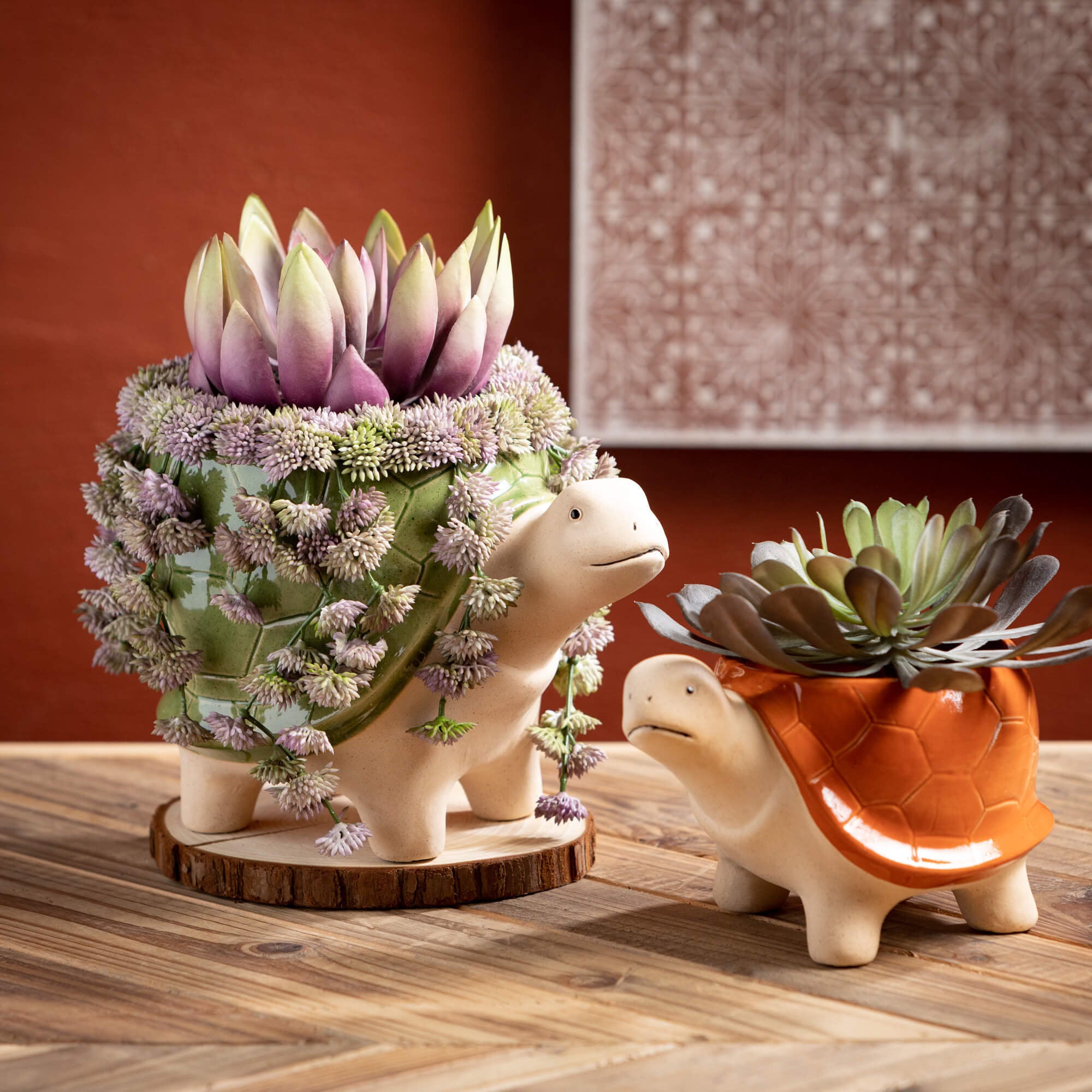 Add a little colorful dose of whimsy to your space with these lovable vessels. This playful pair is just the perfect pot for housing your favorite plants. Sized for the tabletop or bookcase, you will have fun finding just the right spot for these characters.