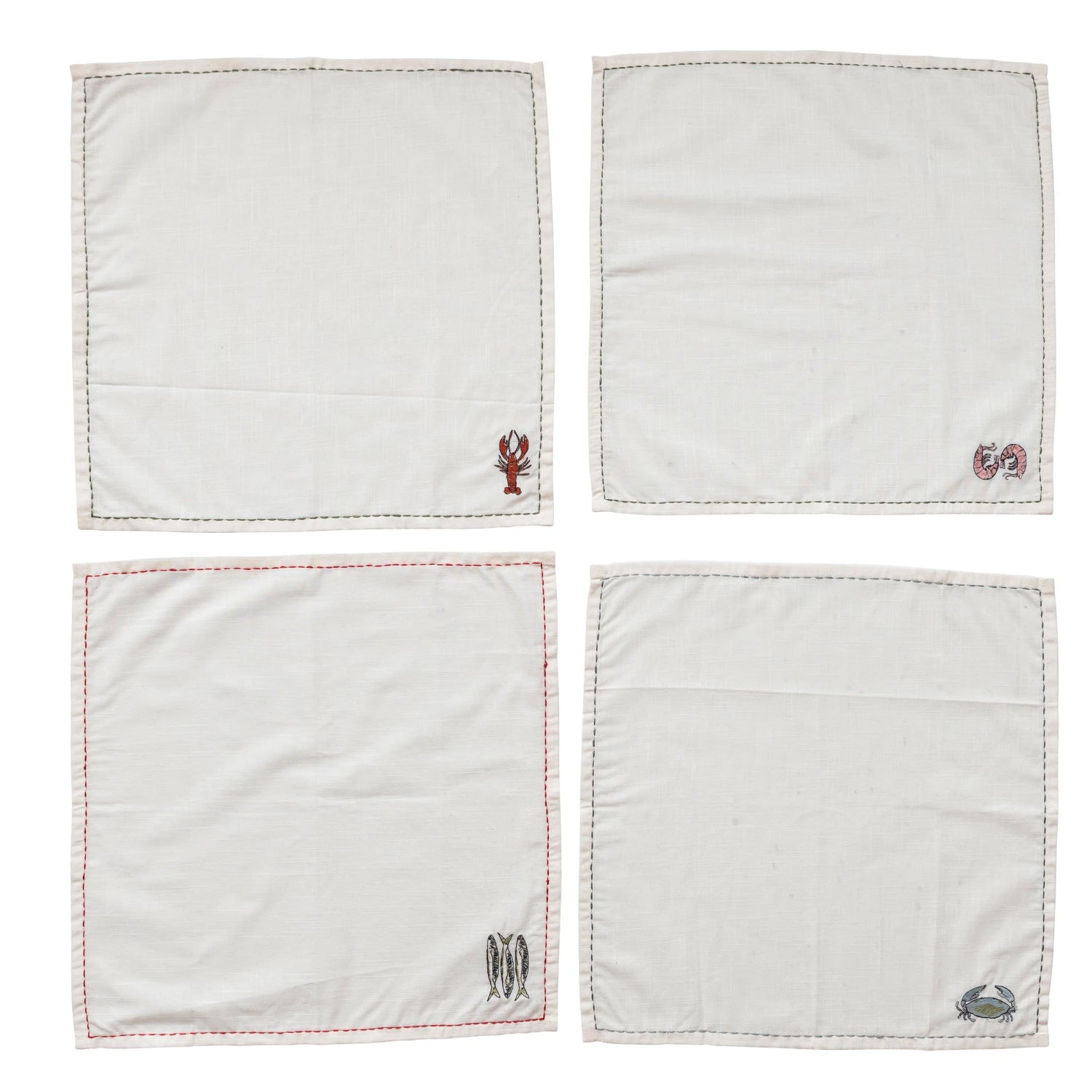 This beautiful set is perfect for a coastal home. Each napkin in the set of 4 is slightly different with a different sea life on each, featuring a crab, shrimp, fish, and lobster. These fun pieces would make a perfect housewarming gift or use to entertain guests.