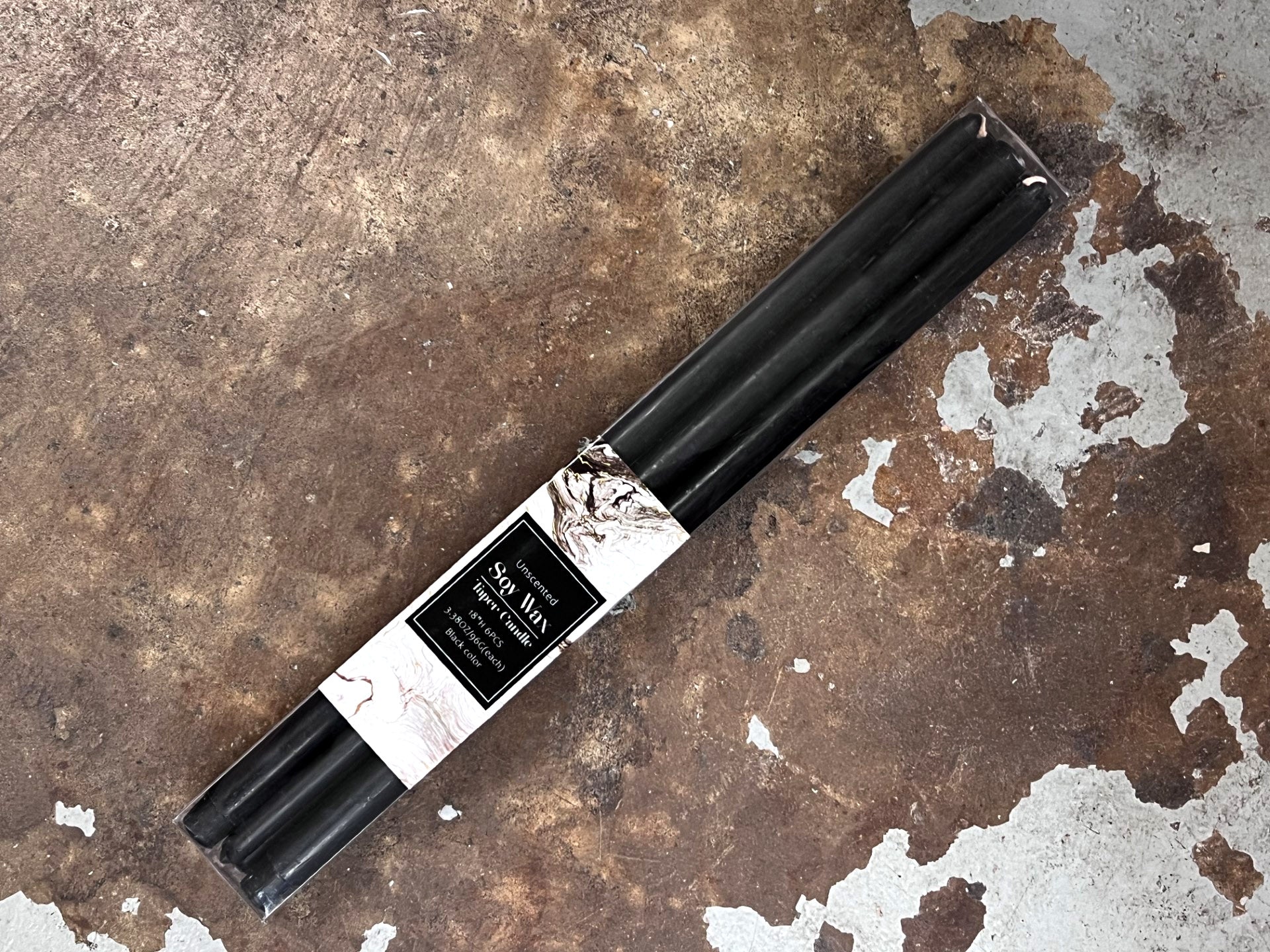 Set of 6 Tall 15″ Unscented Soy Taper Candles – Black