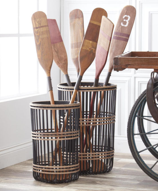 Transform your space with our Set of 6 Wooden Paddle Oars! Hang them on the wall as a group or use them as a display piece in large baskets. Perfect for adding a touch of coastal charm to your cottage home.