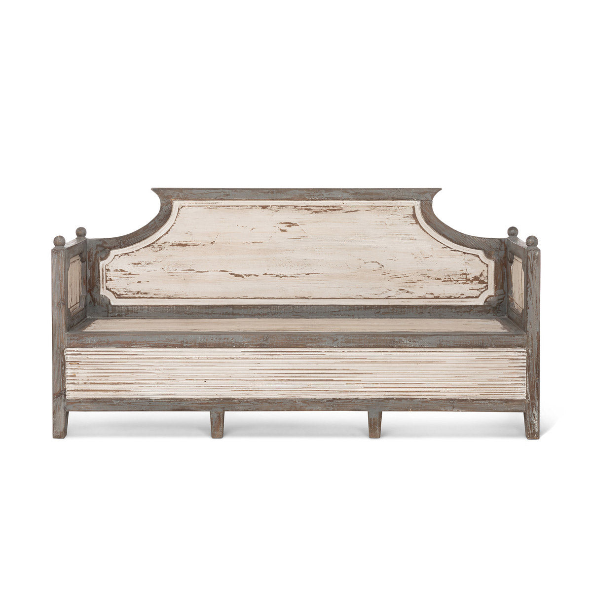 The stately curved back of our Simone Bench is inspired by traditional French Country style. Welcome your guests in a foyer or on the front porch with this beautiful piece. Something that will truly be a statement item in your home.