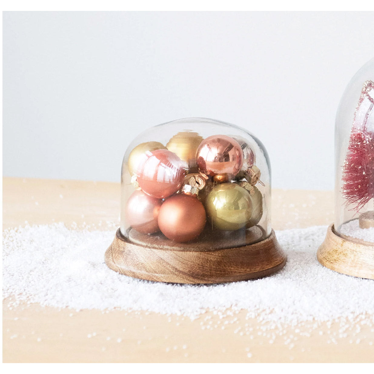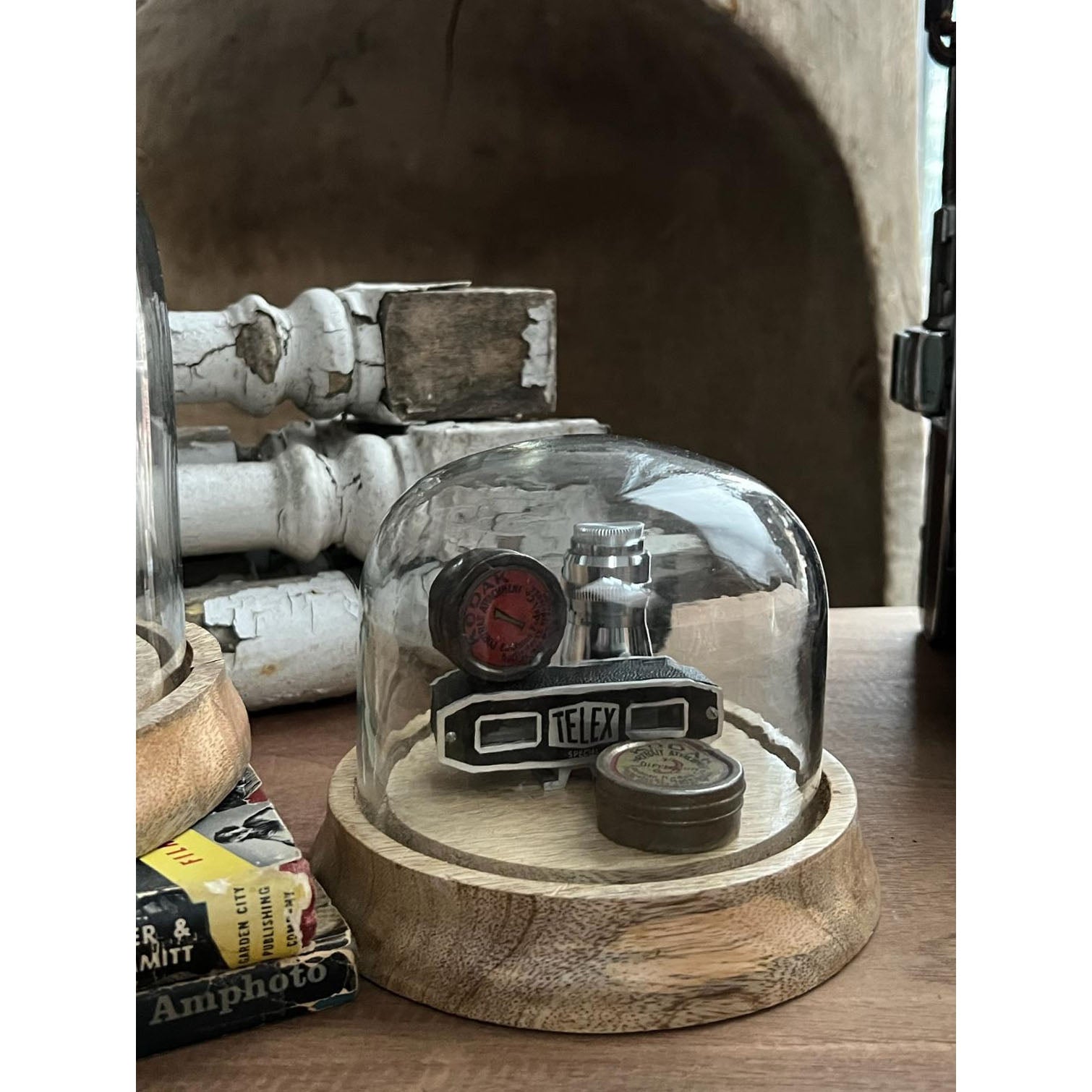 This small cloche with wooden base is very pretty. When placing objects within it almost creates a type of snow globe appearance. The cloche is perfect for something small that you want to treasure, a lock of hair, a special piece of jewelry or fill it and make it a part of your everyday décor.
