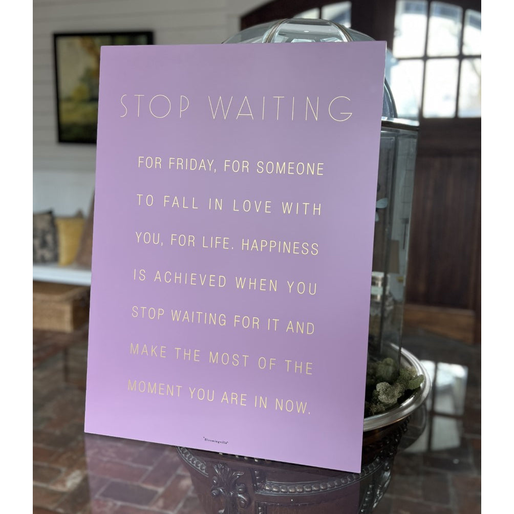 Stop Waiting for Friday, for someone to fall in love with you, for life. Happiness is achieved when you stop waiting for it and make the most of the moment you are in now.