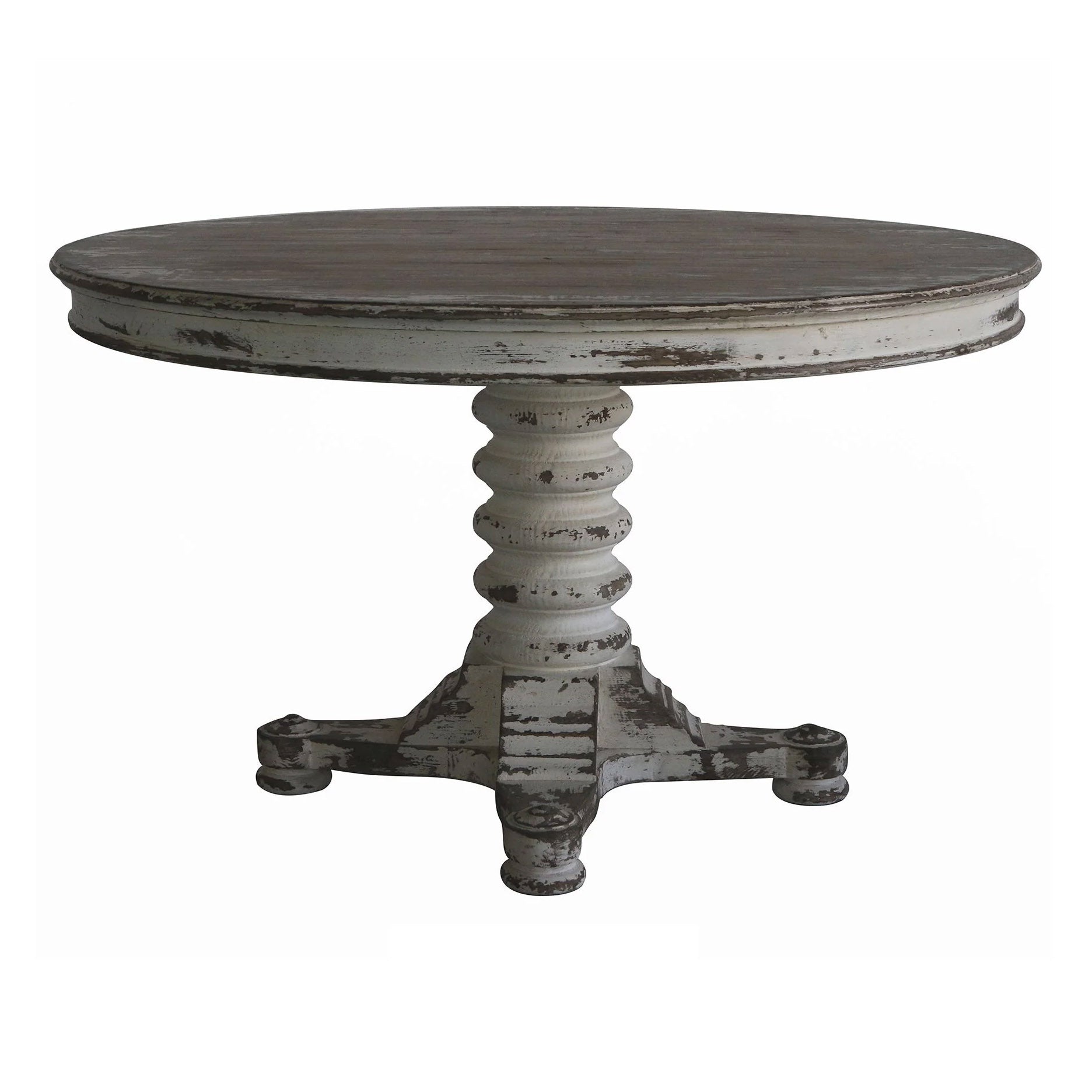 Our Bobbin Table exudes sophistication and timelessness with its exquisitely distressed painted finish, the perfect addition to classically styled breakfast rooms, intimate dining areas, or grand entryways. An ideal size for any space, it adds a finishing touch to any home.