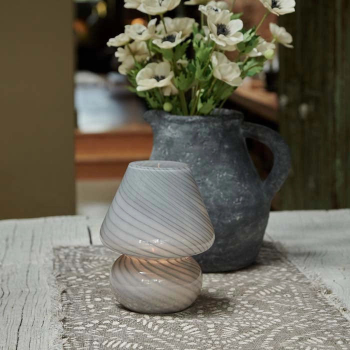 Experience the perfect blend of style and convenience with the Cordless LED Table Lamp in cloud color. Portable and battery operated, this charming lamp with a frosted yellow glass in a whimsical mushroom design emits a warm and inviting glow. No plug socket? No problem! Place it anywhere for a stunning effect.