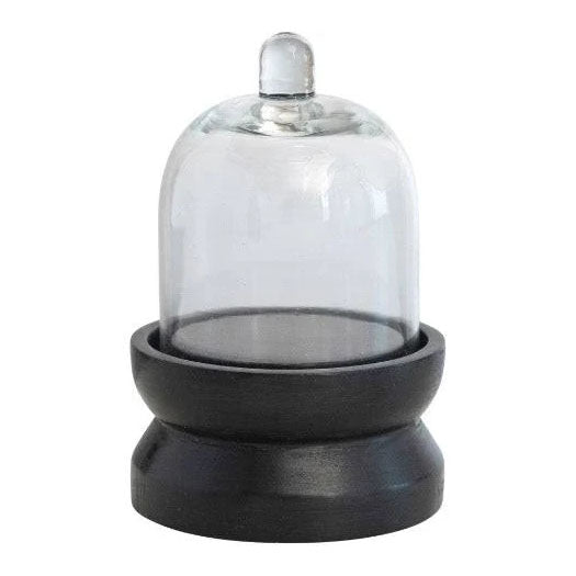 Glass Cloche w/ Mango Wood Pedestal Base