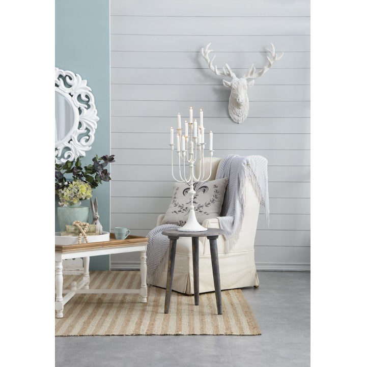 Parisian style is effortless, chic and often sought after in decor. Combining the timeless details and modern colors, the 11-Light Candelabra becomes an elegant staple of French Country decor. Alternating heights of the iron candelabra arms create a drop curve before extending upwards to a taper candle holder. Create a soft candlelight glow in any interior with the beautiful Candelabra.