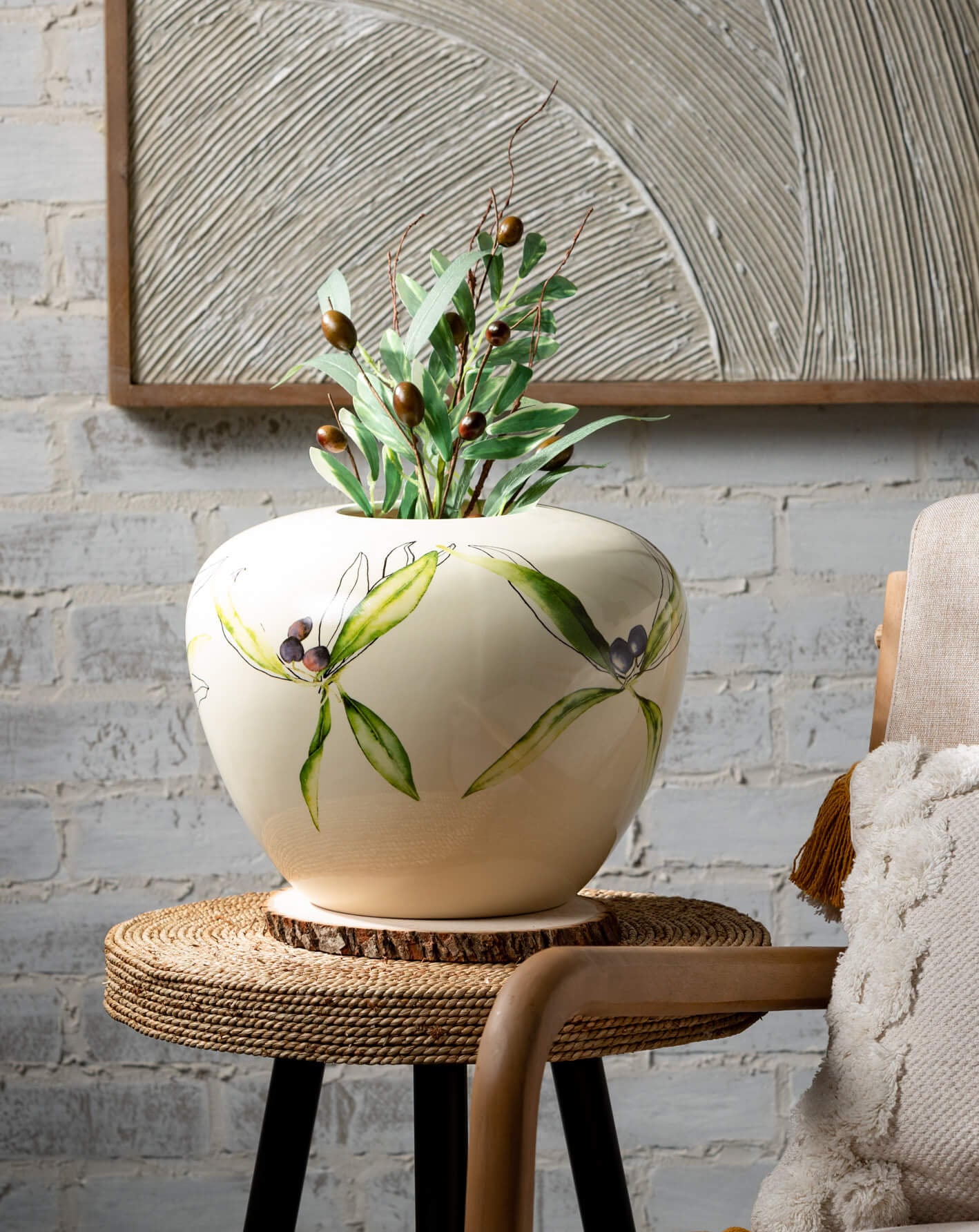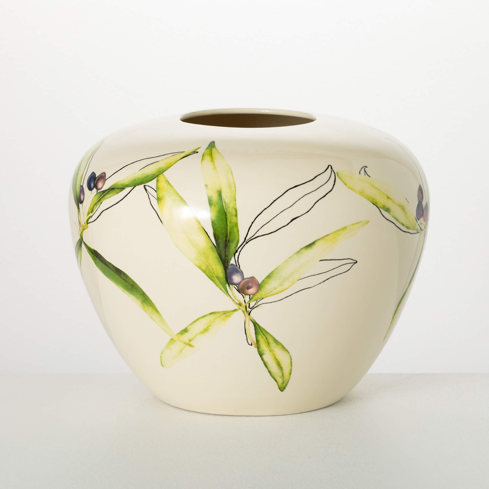 Add a touch of elegance and style to your home with The Olive Vase. This beautiful, creamy white ceramic vase is not only a statement piece, but also adds a perfect design to any room. Elevate your home decor with this stunning and versatile piece.