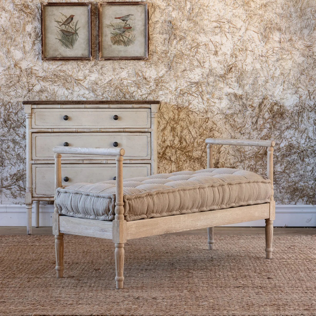 Bring timeless style to any room with The Saint Denis Bench! Featuring a luxuriously plush cushion and high sides, this bench is perfect for adding comfort and charm to your living space. Perfect for a cozy spot in front of a fireplace or window, or at the end of the bed.