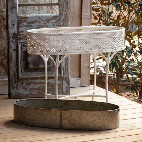 Our Highland Planter with Liner is a great plant box. The antiqued painted white finish is great for an outdoor setting or can be placed in a casual indoor setting.