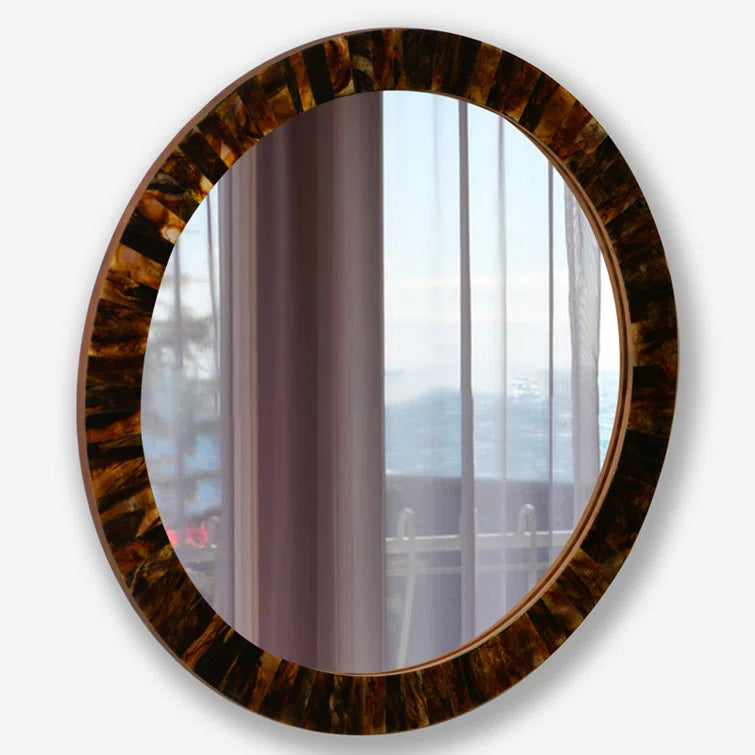 Elevate your space with our Tortoise Shell Wall Mirror, handcrafted from MDF and resin. Its semi-gloss finish adds a modern touch while its unique tortoise shell design exudes a luxurious feel. A perfect complement to any mirror, adding sophistication and elegance to your decor.