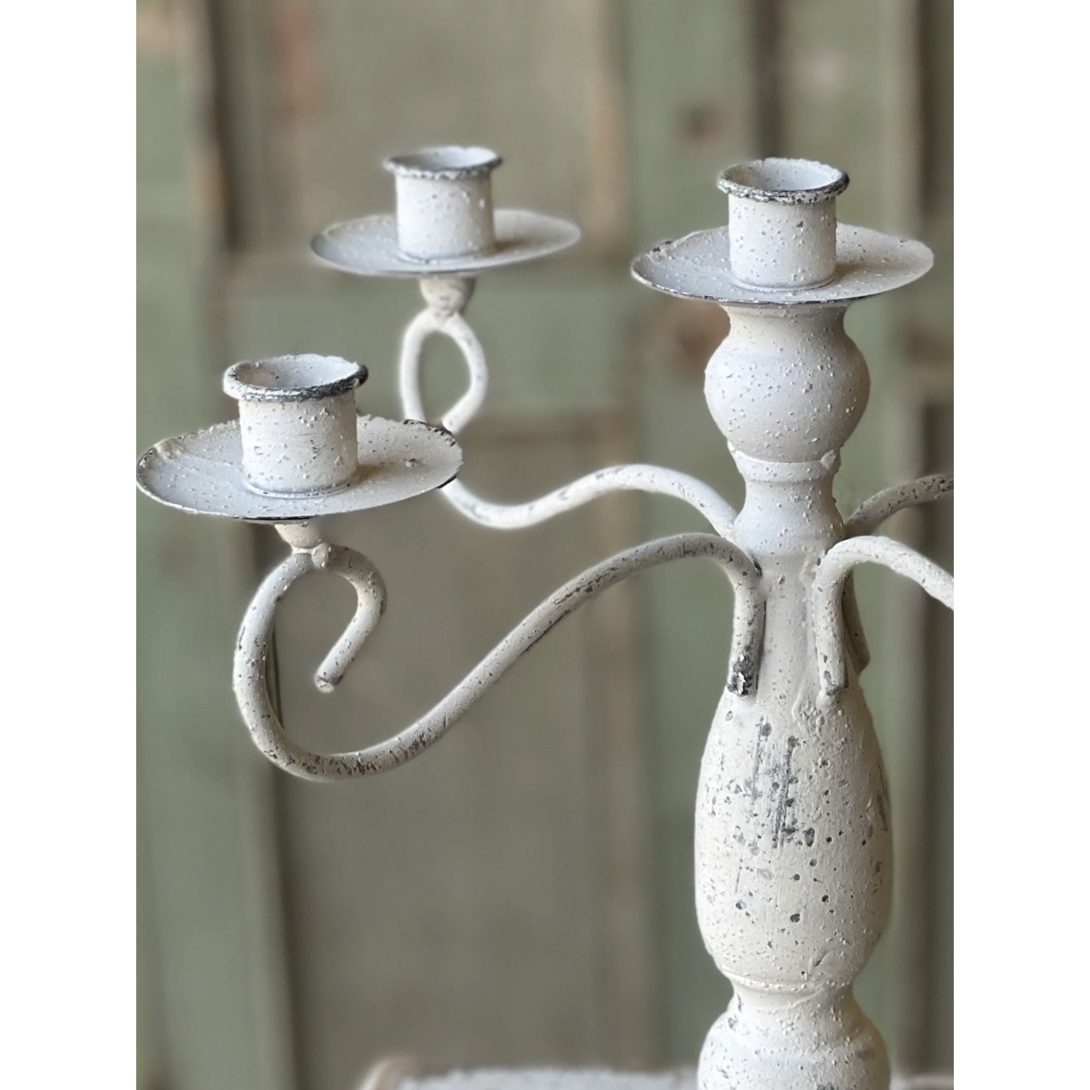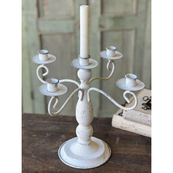 This wonderdul candelabra is perfect as a year round piece. It can used as a centerpiece on a table or an accent piece on a buffet or sofa table. The piece can be dressed up for the the holiday with small candle rings or looks just as beautiful as is with just candles. Perfect for a farmhouse or coastal style home.