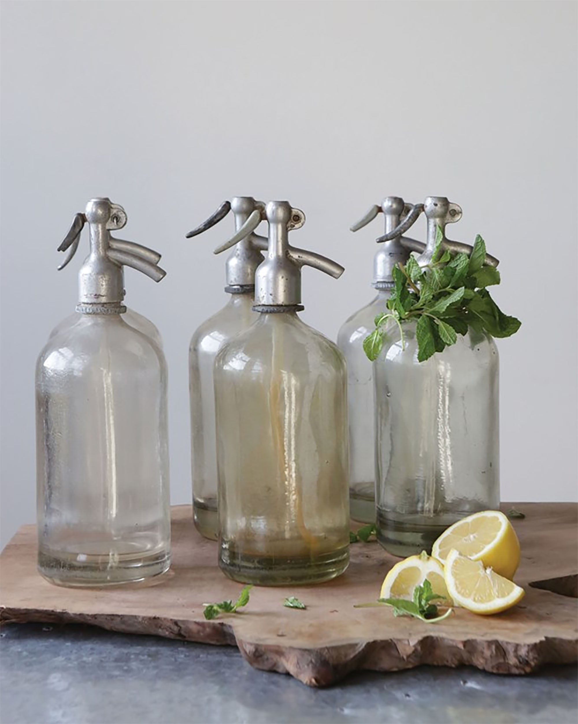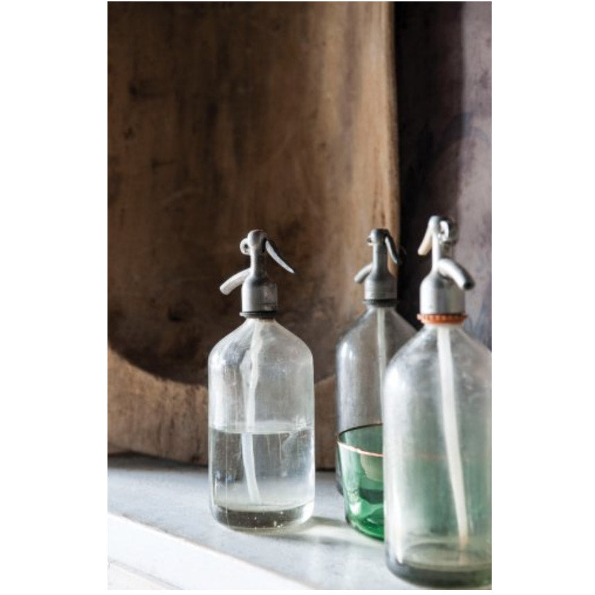Salvaged from bars and pubs across Europe, these vintage bottles were once filled with seltzer for making fizzy spirits. They truly make a great decorating piece! Whether displayed alone, or in collections, each piece is an elegant reminder of times past. Each one is slightly different and some may contain liquid that cannot be emptied. We will choose a beautiful one just for you. They are only for decorative purposes.