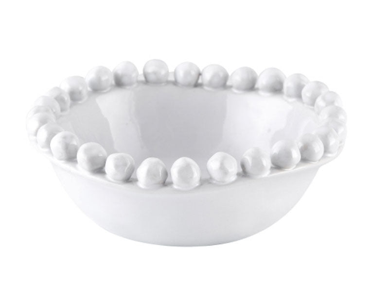Elevate your dining experience with our White Dotted Edge Bowl. Handmade from stoneware, this bowl embodies a fun and unique style that will add character to any table setting. Perfect for serving your favorite dishes, this bowl will surely impress your guests.