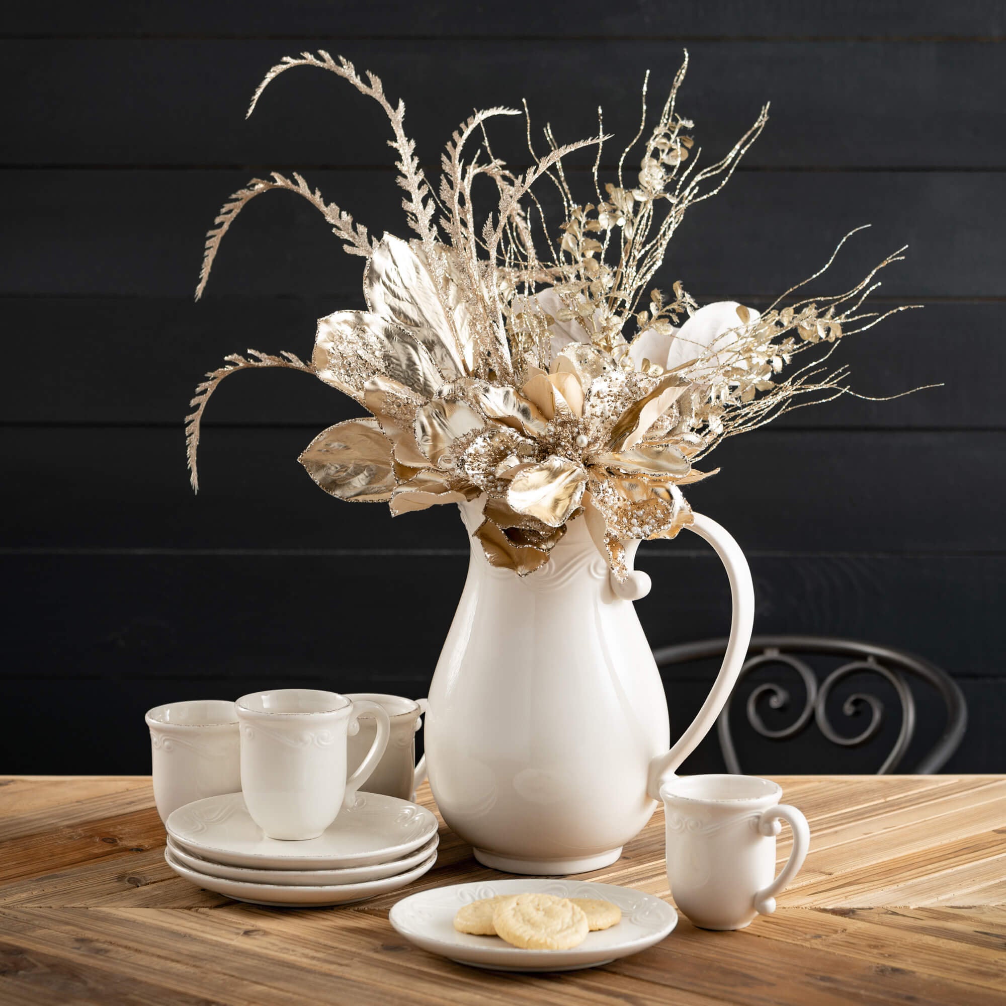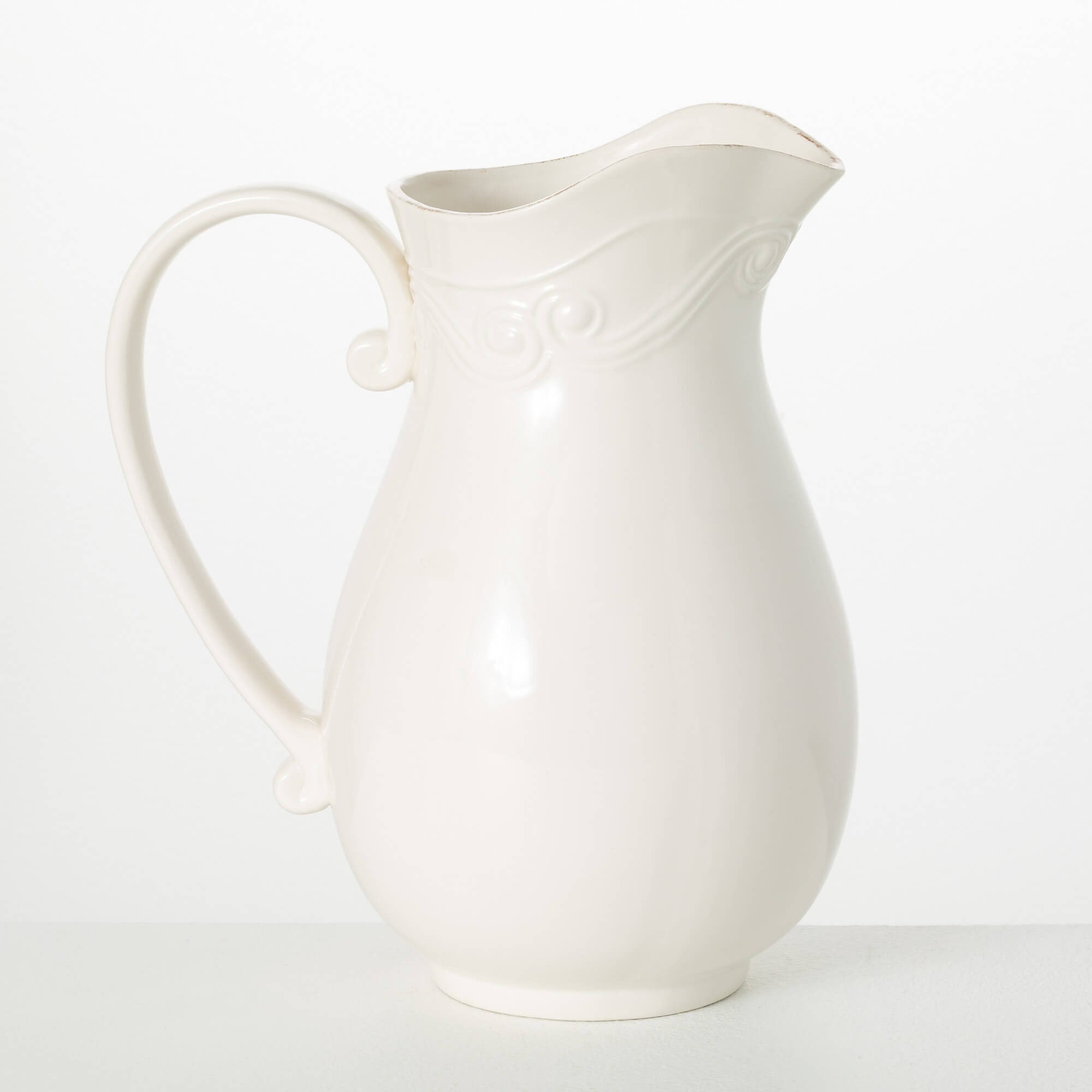 This distressed, white pitcher is embossed with an exclusive design for a sophistiated, vintage feel. Thrill your Holiday guests when you entertain this Christmas season with this cultured, ceramic pitcher. It’s fancy enough for Holiday decorating and neutral enough to be used year-round.
