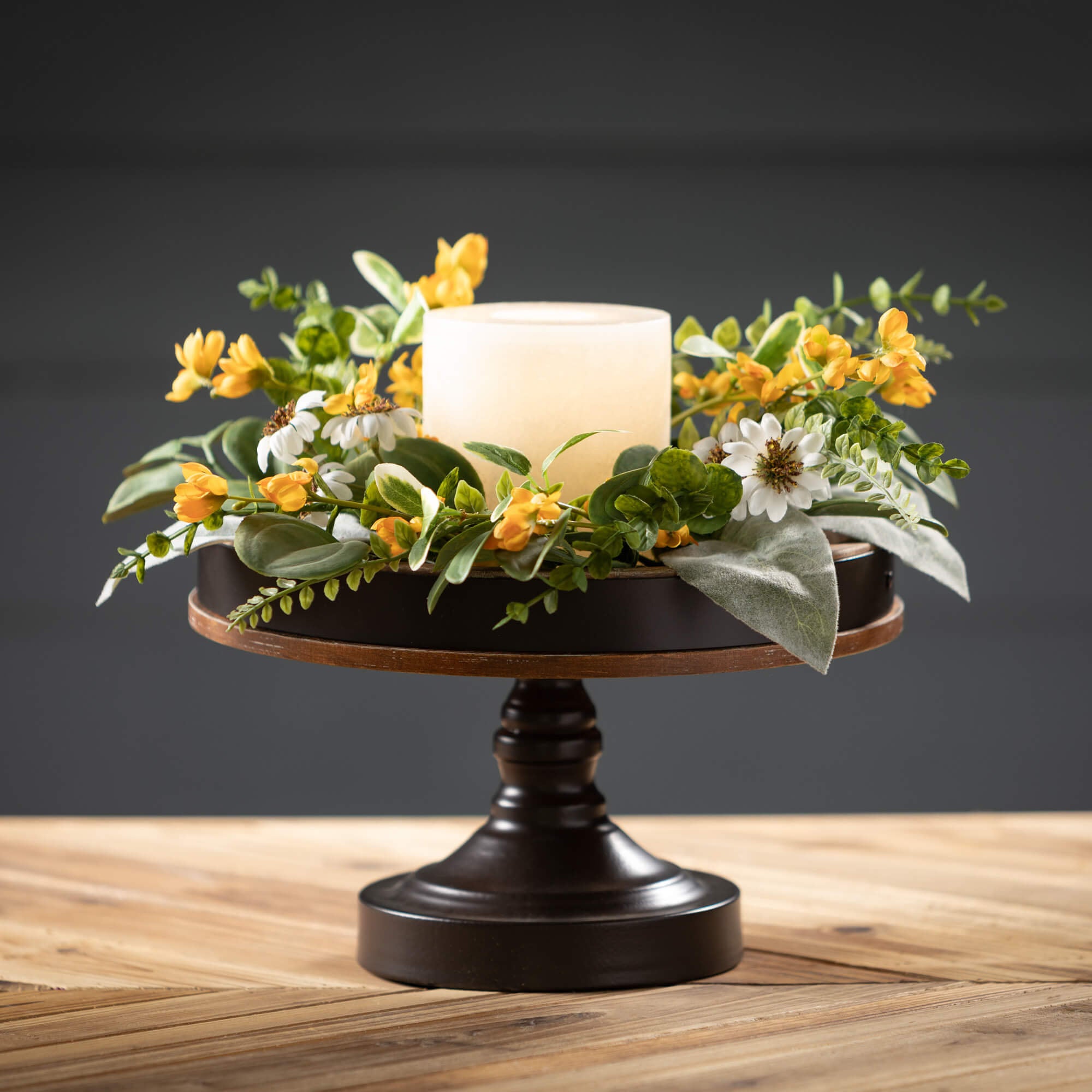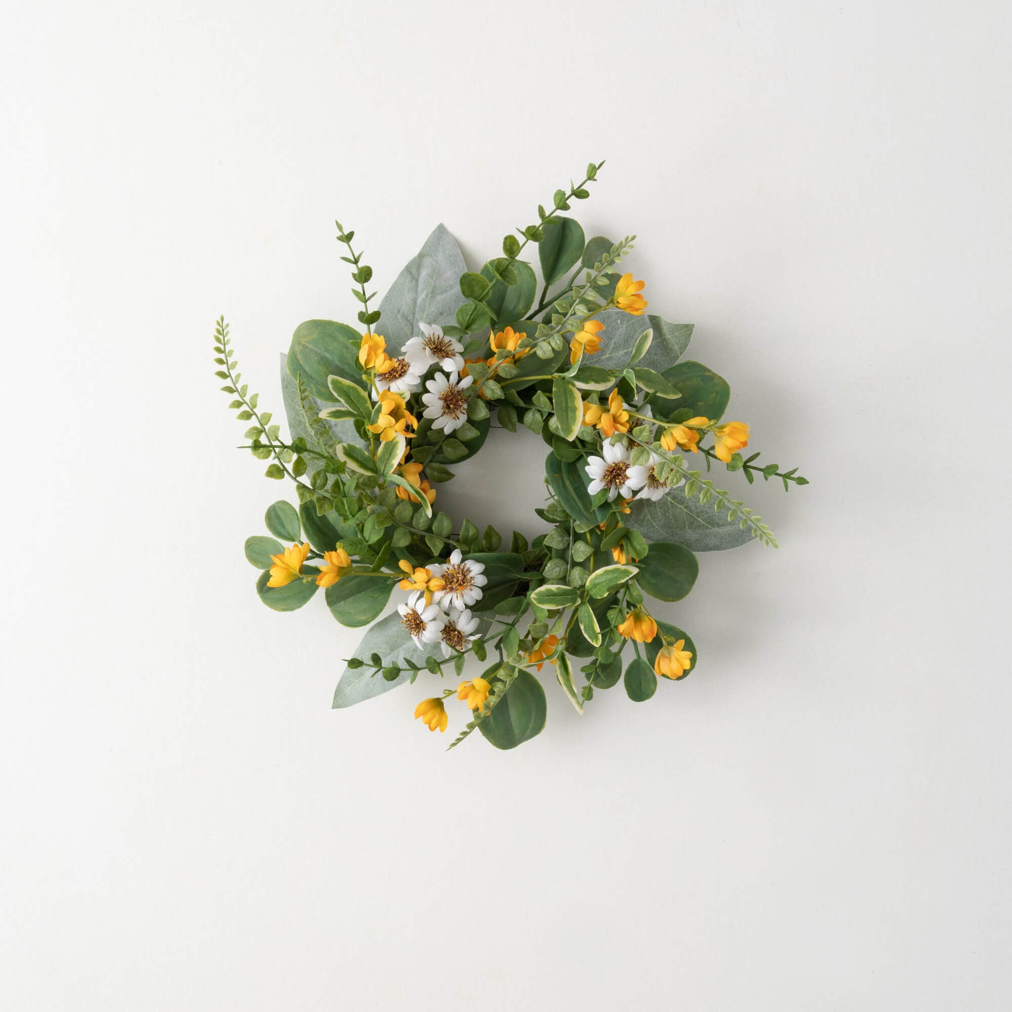 Add a touch of natural beauty to your home with our handcrafted Wildflower Candle Ring Wreath! Bursting with vibrant faux blooms and lush foliage, it’s perfect for adding a fresh, spring look to table or hang in window. Would also look lovely tied with a ribbon to the back of a dining chair. Elevate your decor and inspire joy with this stunning wreath.